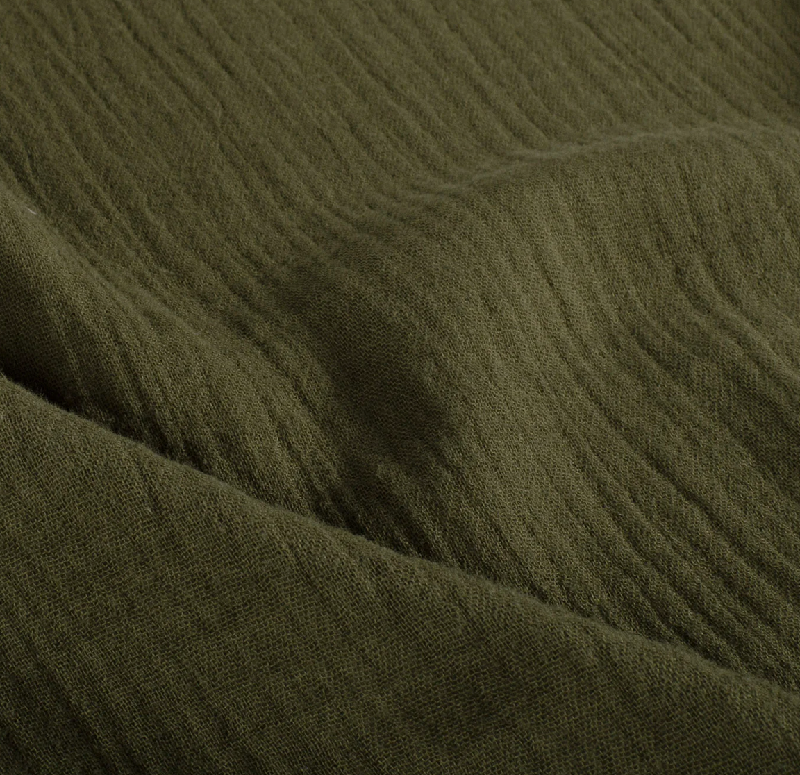 Aus 100 % Baumwolle gefertigt, überzeugt der Stoff durch seine weiche, doppellagige Struktur und den typischen Crinkle-Look.